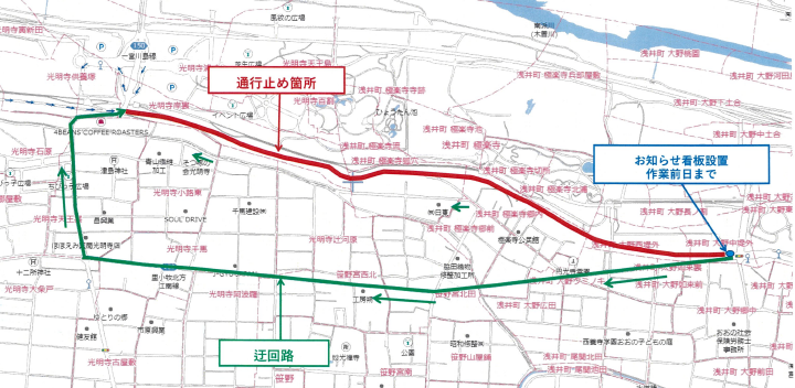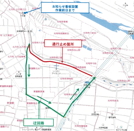 樹木の伐採に伴い、下記の日程で堤防道路が通行止めになります。