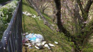 3/29に管理棟北側のサイクリングロードに、バーベキューをした後と思われるゴミの置き去りが発生しました。
