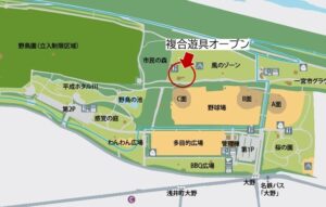 大野極楽寺公園の管理棟から野球場の間を抜けて、北側にある風のゾーンにあります。