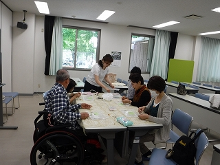 5月14日は紙で作るバラのアクセサリー「ロザフィ」体験でした。