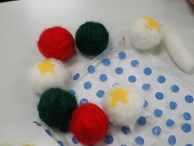 毎月恒例の羊毛フェルト体験、11月はクリスマスに向けたリースの作品を作りました!