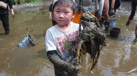 泥の中に入れるように汚れてもいい服装(長袖・長ズボン)、また泥の中でも足を取られにくく、足をしっかりと守る靴(古い運動靴などが推奨)でお越しください。サンダルは不可、長靴も足を取られやすいです。