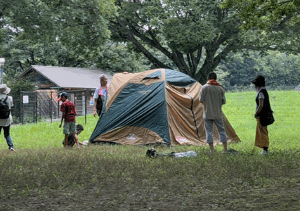 | 持ち物 | ・キャンプ用品一式 (テント、マット、シュラフ、イス、テーブル、ランタンなど必要に応じて) ※レンタルあり(有料) ・食器・箸・コップ ・水道水以外の飲料水が必要な人は各自で準備 ・アレルギーのある方は各自、食べられるものを準備 ・虫よけ |