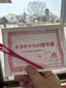 3つのメッセージが分かったら、管理棟のスタッフに教えてください。 タヌキからのプレゼントをご用意してます(お一人様ひとつまで)。